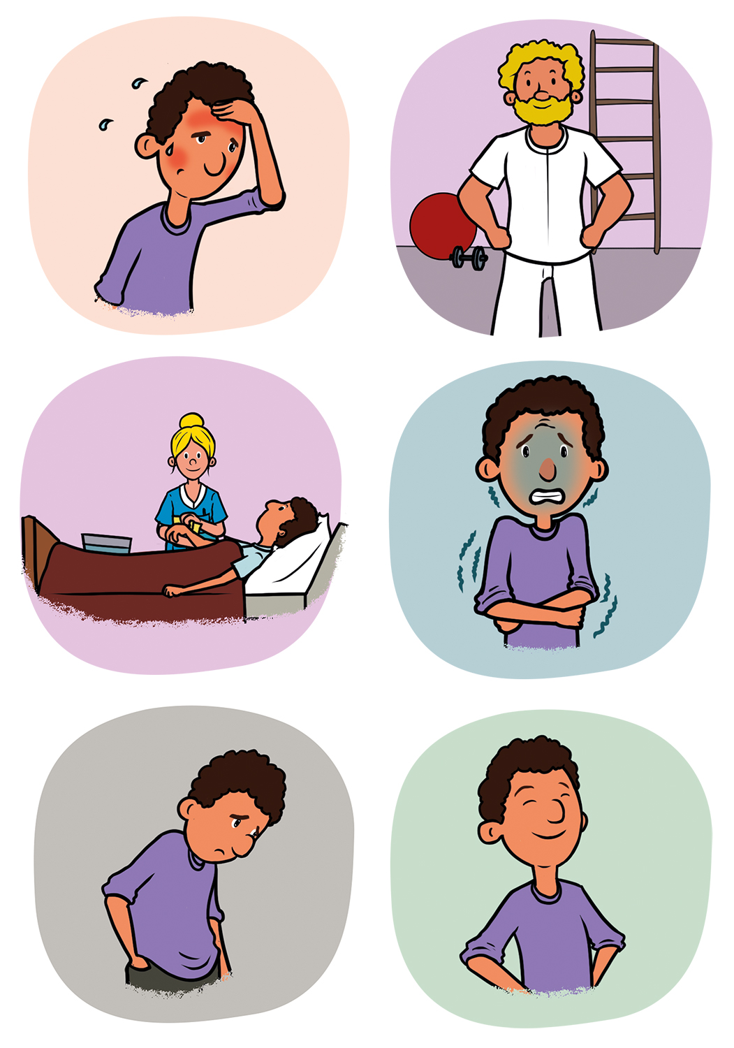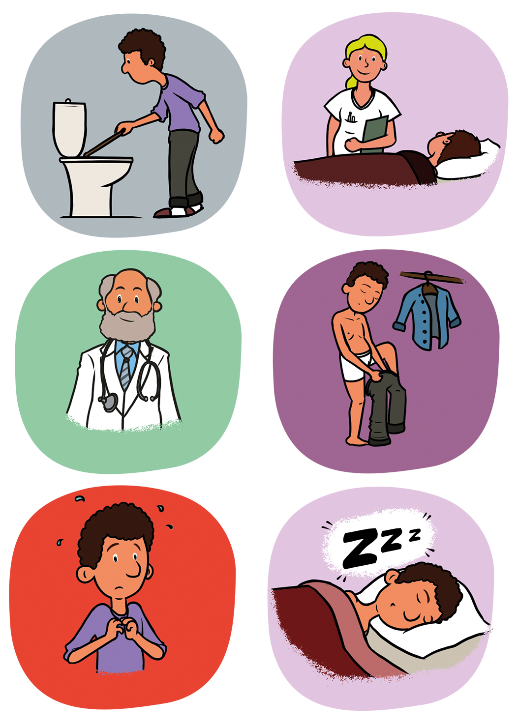 Série d’illustrations réalisées en agence pour la Clinique des Augustines. Ce support visuel aide les patients à exprimer leurs besoins ou leur état physique et mental sans avoir recours à la parole.