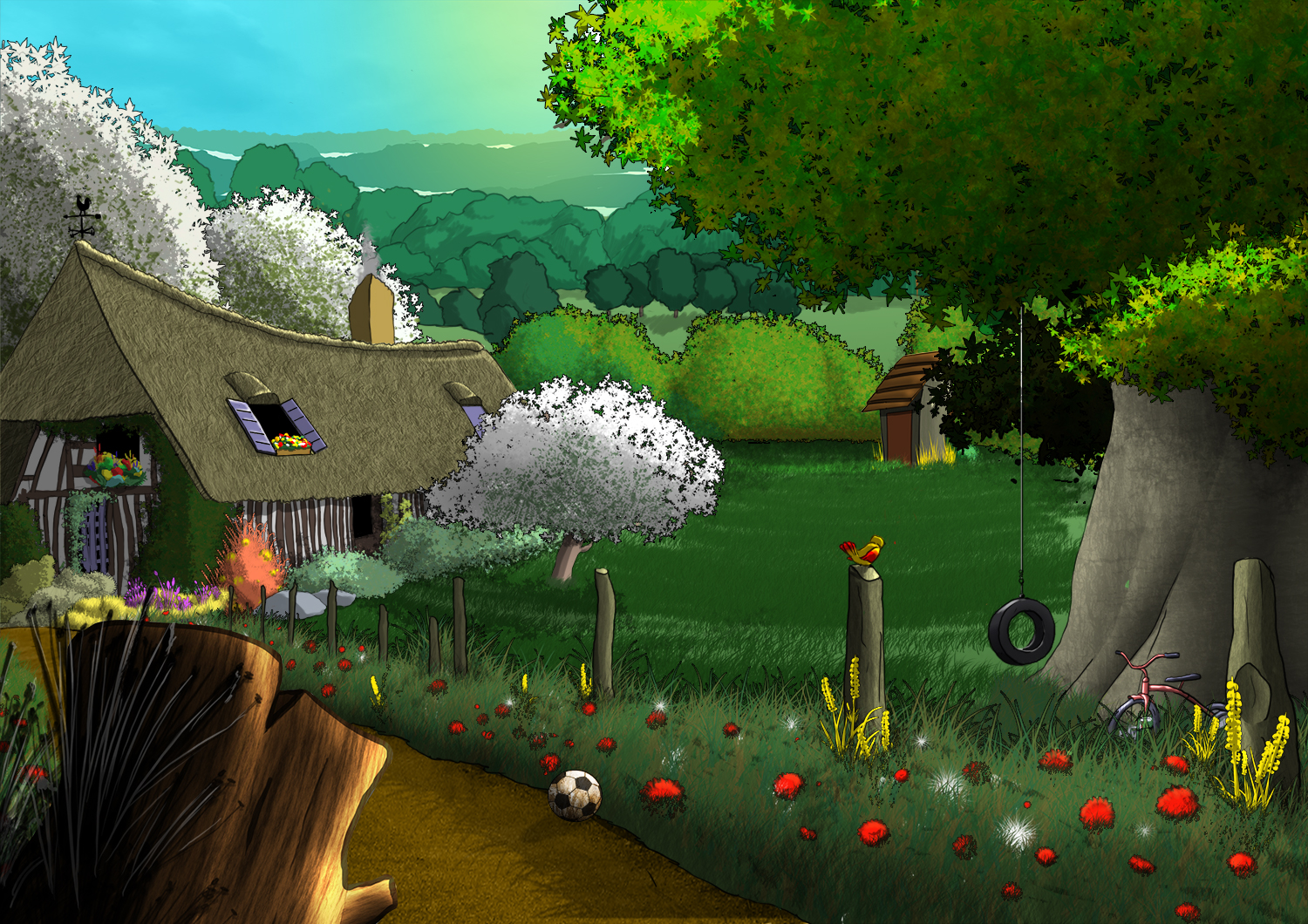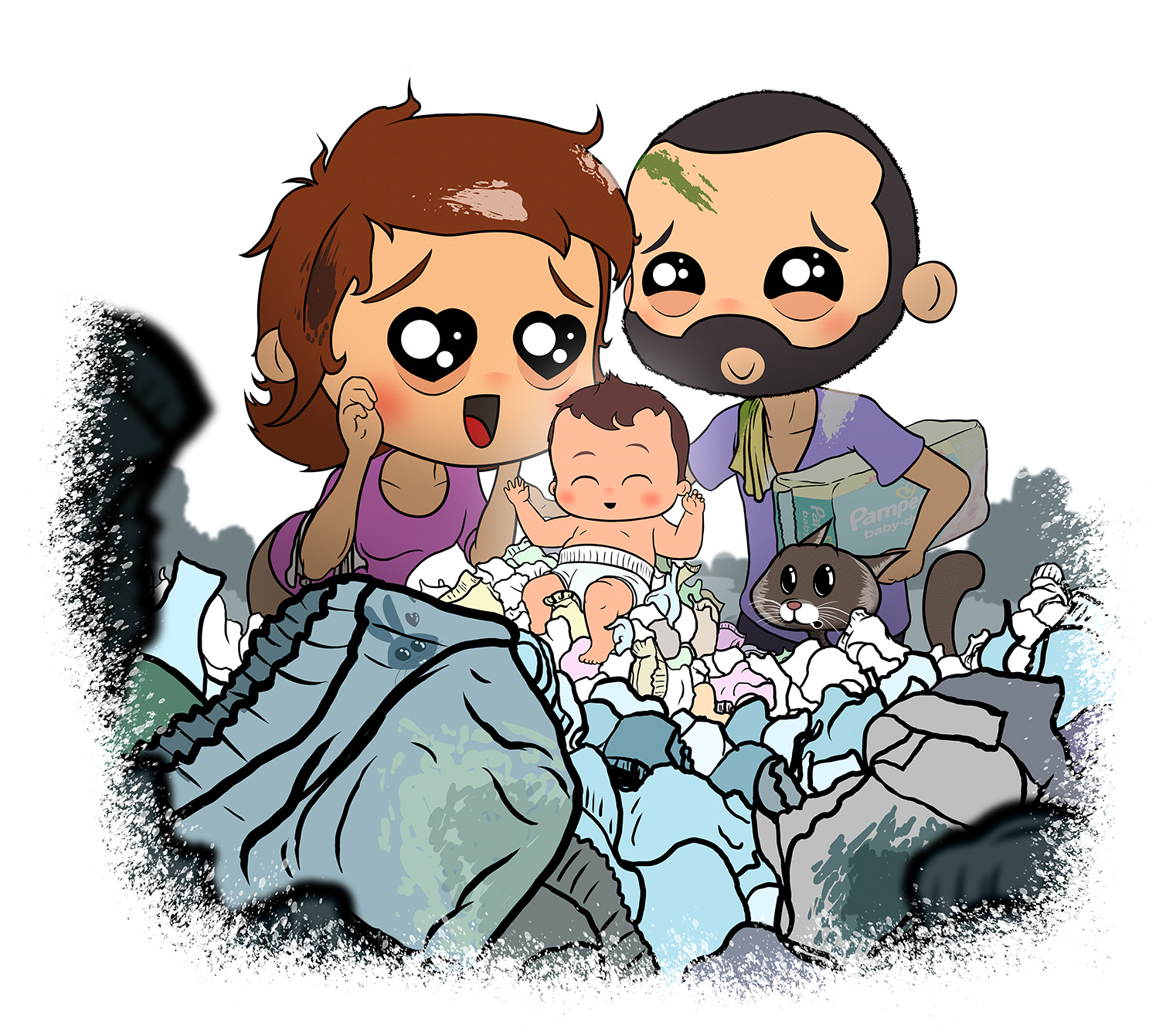 Illustration personnelle pour le faire-part de naissance de mon enfant, réalisée en 2022.