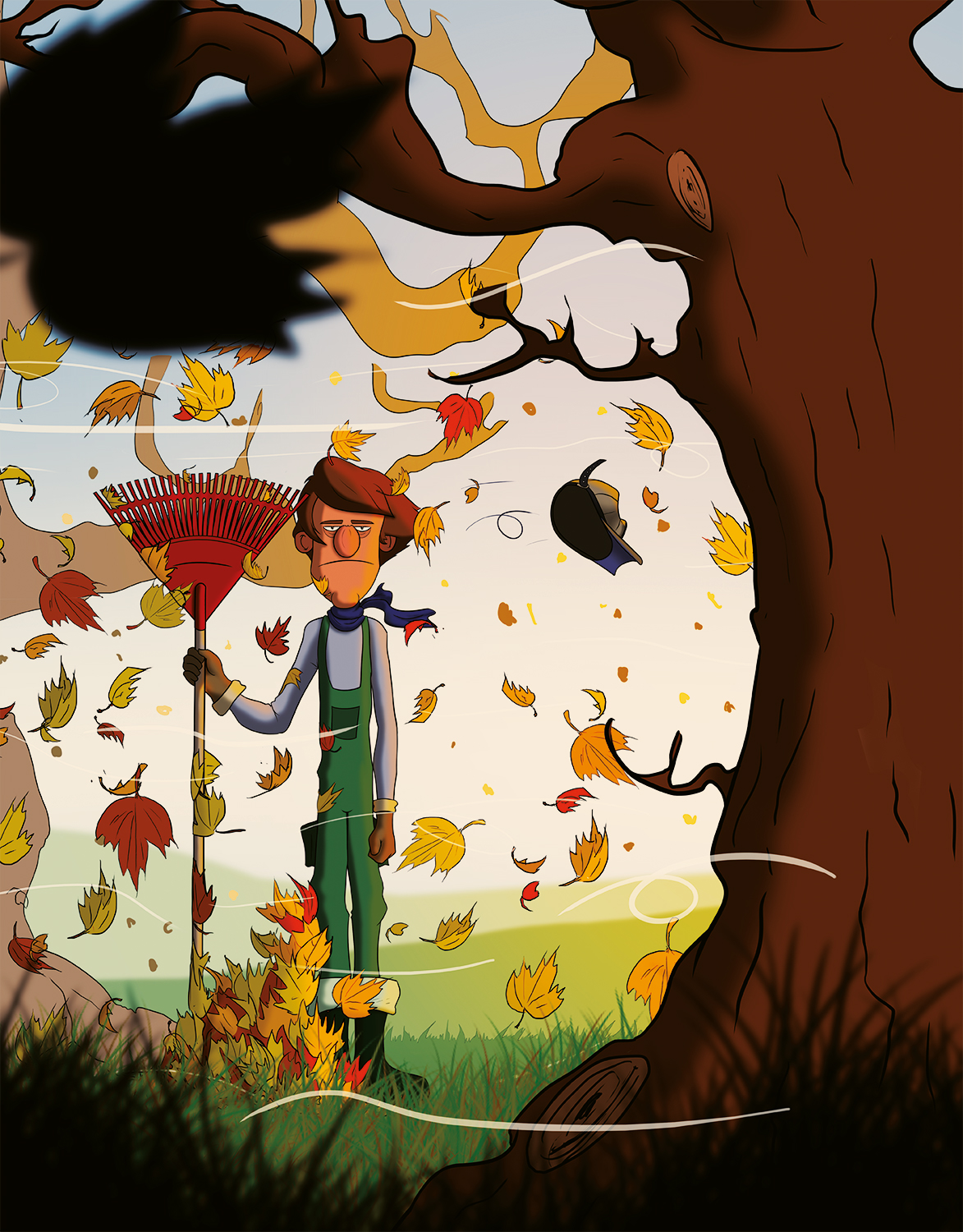Illustration pour le livre Valentin Traîne-Matin, Chouette Éditions, 2013.